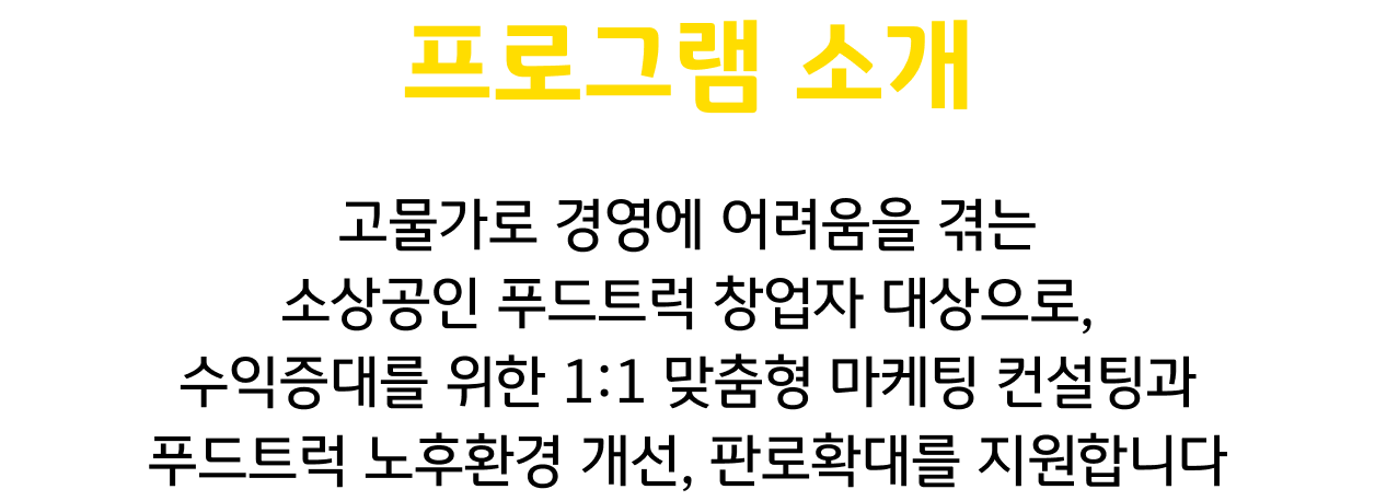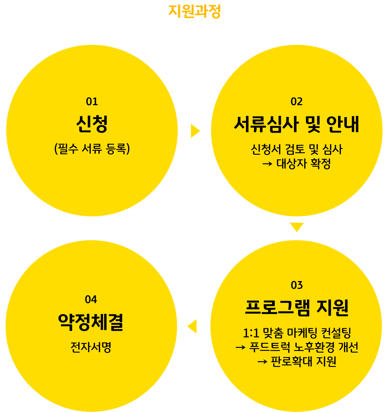 1:1 맞춤 마케팅 컨설팅 > 푸드트럭 노후화 개선 지원 순서로 진행됩니다.