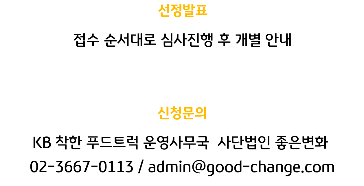 신청접수 순서대로 적격여부, 지원타당성 등 종합심사를 진행하여 선정여부를 개별 통보합니다.