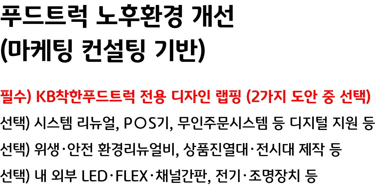선정시 1:1 맞춤형 마케팅 컨설팅은 통합지원이 되며, 컨설팅 내용을 기반으로 푸드트럭 노후화 개선을 진행합니다.