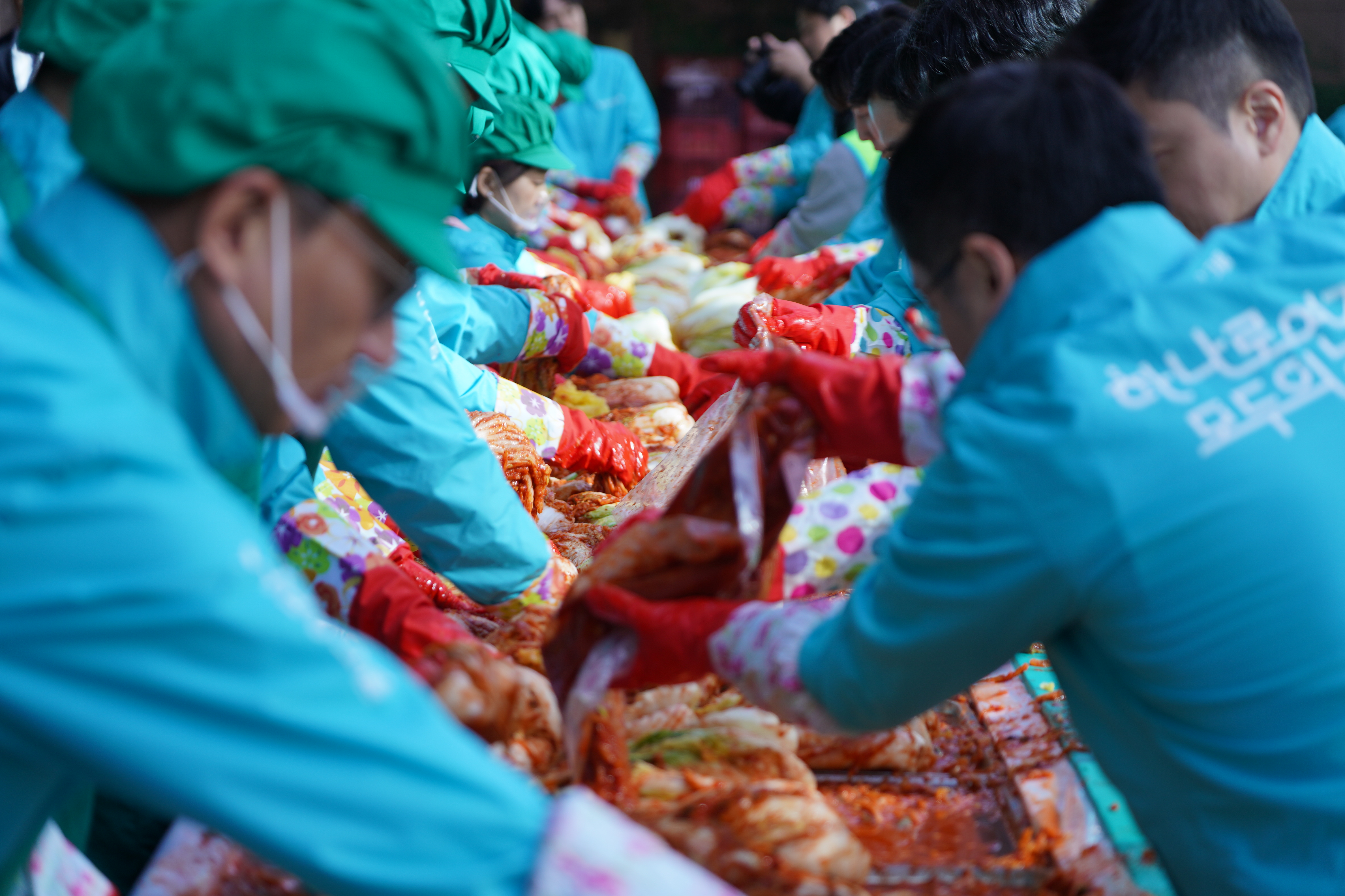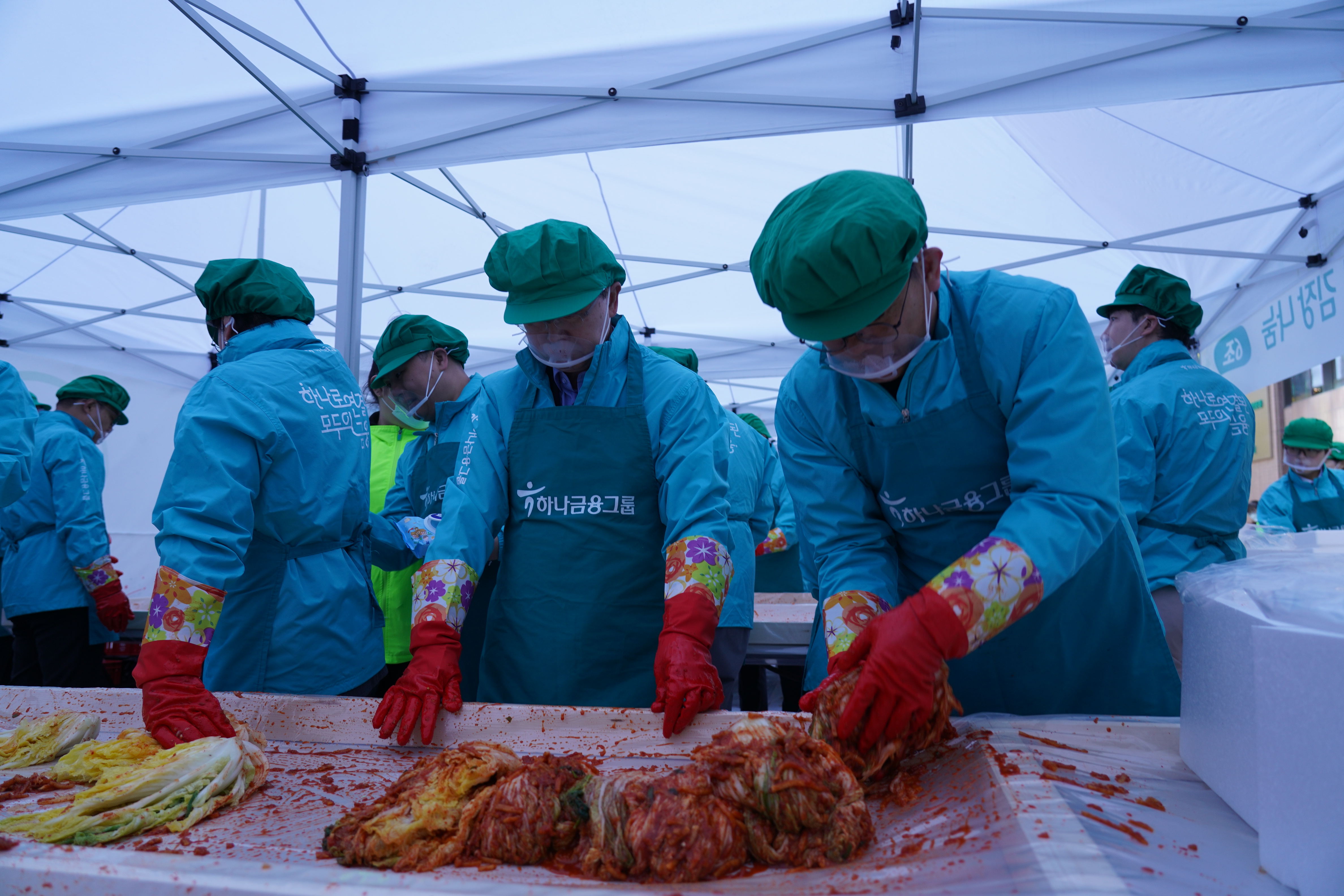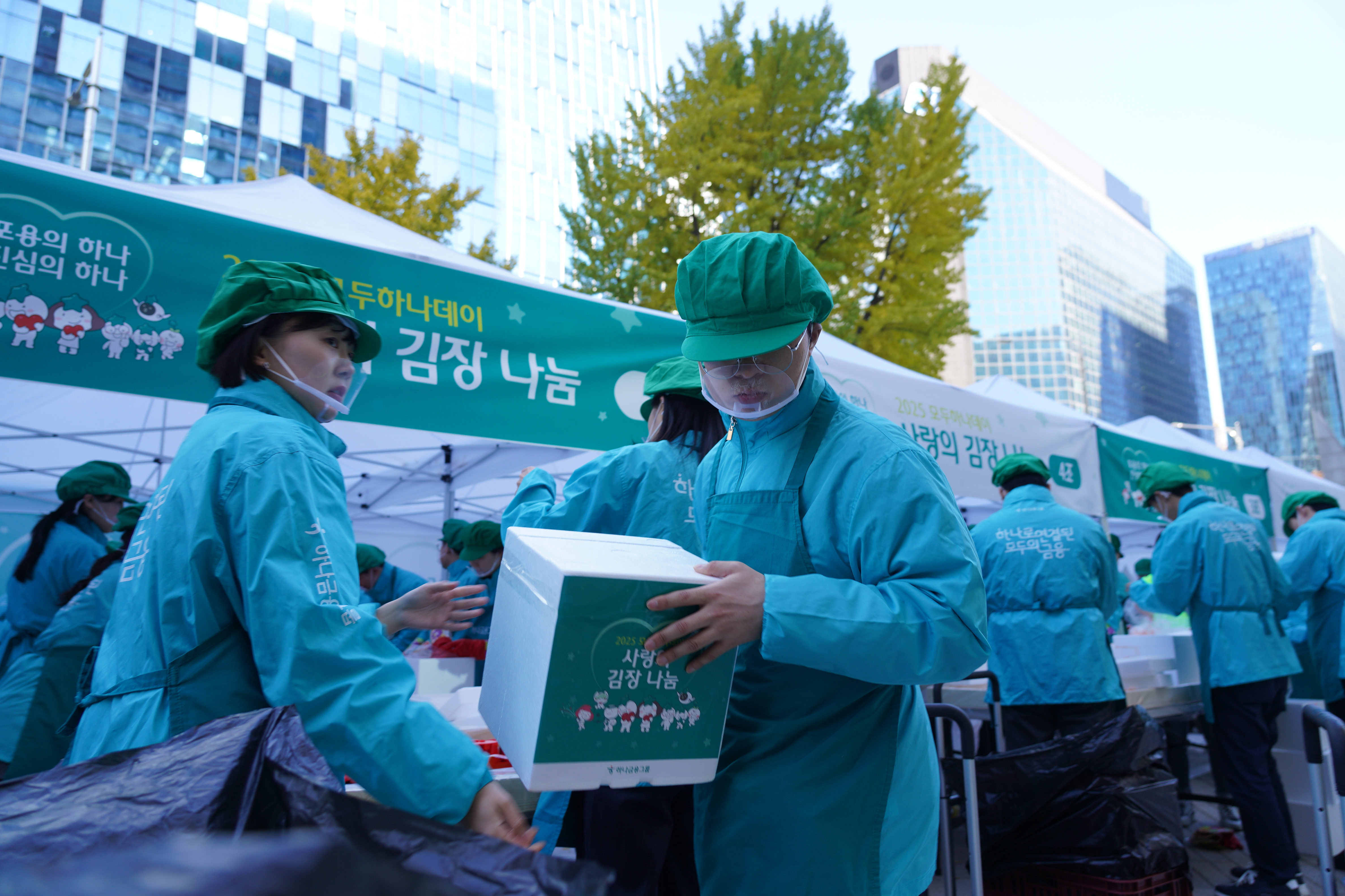 선포식에서는 발달장애인으로 구성된 연주단체 ‘드림위드 앙상블’의 공연을 시작으로, 소상공인 지원, 시니어 일자리 창출, 장애아동 지원, 금융교육 활성화 등 하나금융그룹의 사회 가치 창출 성과가 공유됐습니다. 행사 후에는 명동사옥 앞에서 임직원들이 김장 나눔 봉사를 진행했습니다.