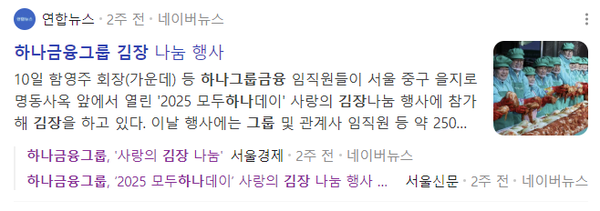 출처 : [BBSNEWS] 하나금융그룹, ‘2025 모두하나데이’ 선포…15년째 이어온 나눔 실천